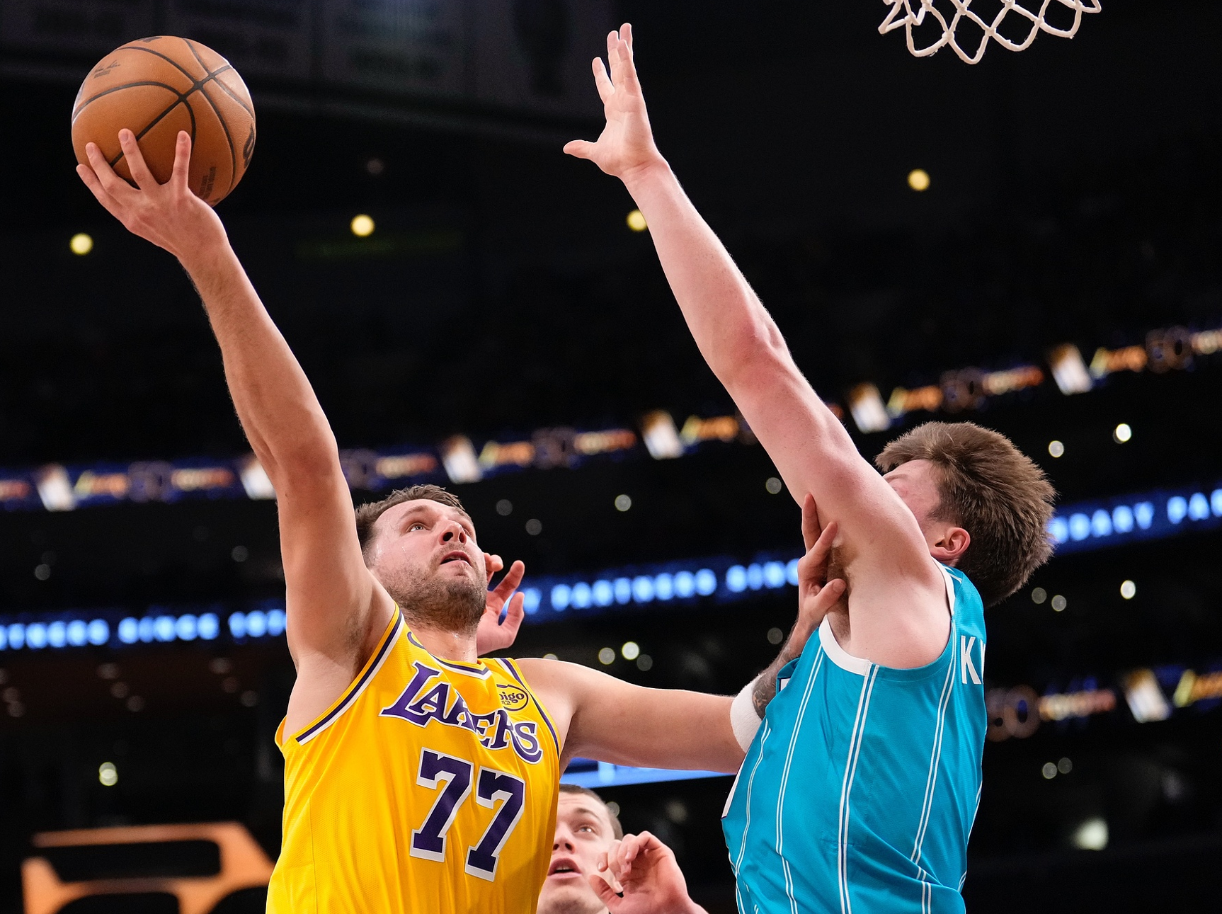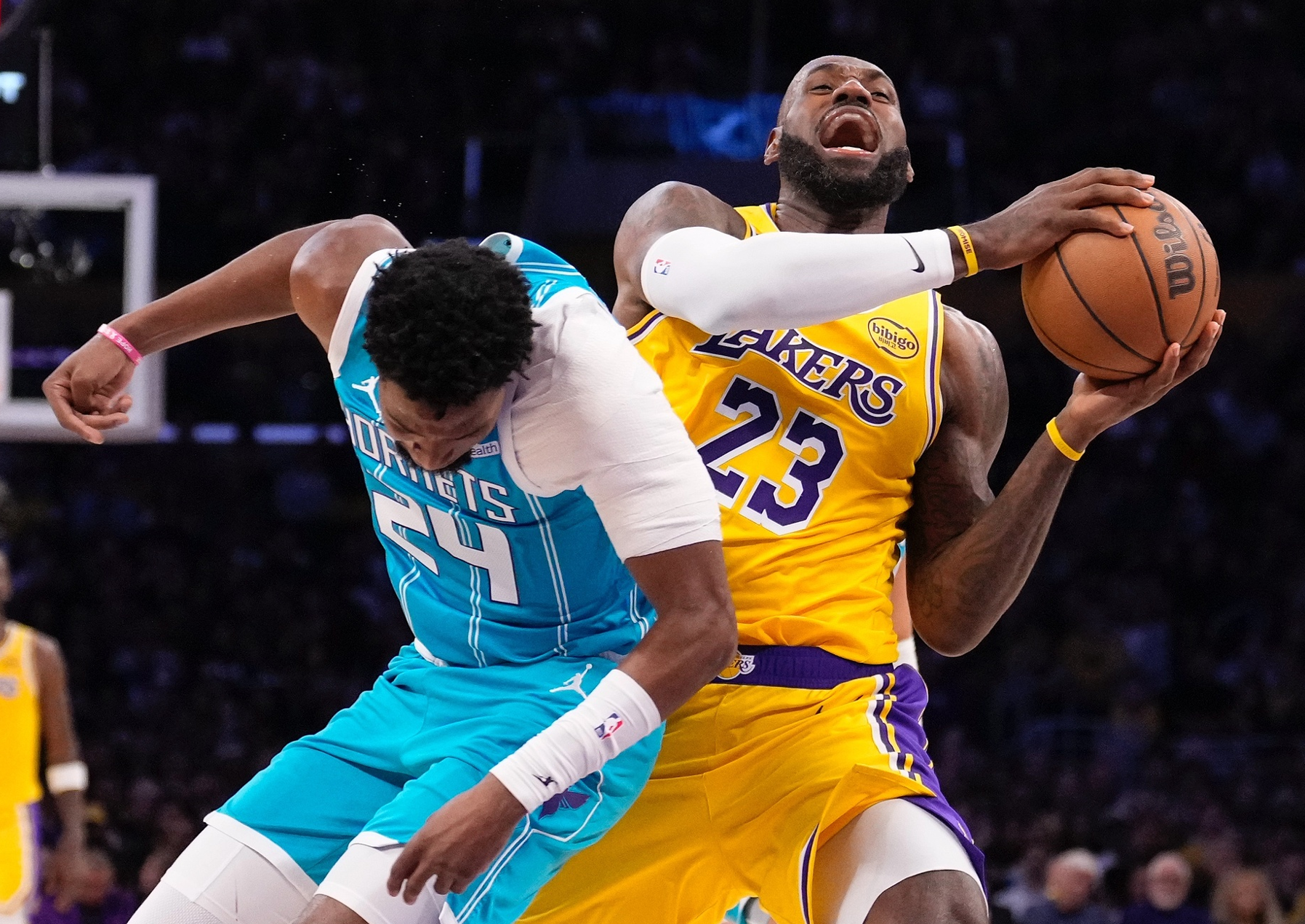 末节,拉拉维亚造犯规两罚全中,东契奇已经回到替补席,湖人最大的问题依旧是防守,黄蜂突破太轻松,好在这一节詹姆斯掌控节奏突破撕裂防守缩小到6分进入暂停。东契奇登场后湖人0-7再度落后到13分,东契奇继续打铁,布里奇斯、三球三分再中,詹姆斯完成一个突破进入暂停,詹姆斯续命2+1,詹姆斯抛投命中,湖人连丢后场篮板,詹姆斯失误湖人无力回天,鲍尔三分命中锁定胜局。