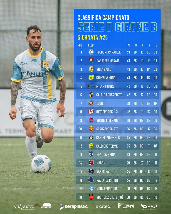 【意丁联赛B组积分榜】 #意丁联赛# 2025-26赛季意丁联赛第26轮积分榜: