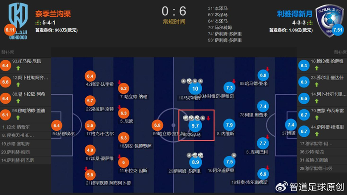 此役,本泽马打入了球队前3个进球,其中1球来自马尔科姆的助攻,本泽马也投桃报李,给马尔科姆送上了助攻。赛后,3射1助的本泽马获得了全场最高的9.7分,马尔科姆3助1射获得了满分-10分。可以说本泽马的到来,这位强力中锋的拿球策划和得分能力,彻底激活了利雅得新月的两个边路,左边锋S-多萨里2射1传,右边锋马尔科姆3射1传,这点是努涅斯完全不具备的能力,38岁的本泽马完全强于26岁的努涅斯。