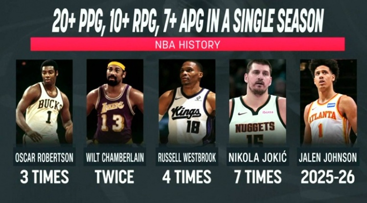 首页 / nba / 开云登录入口-赛季场均20+10+7榜:约基奇7次威少4次 大O3次大帅2次 杰伦约有望