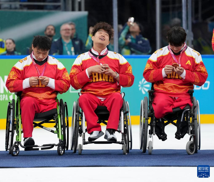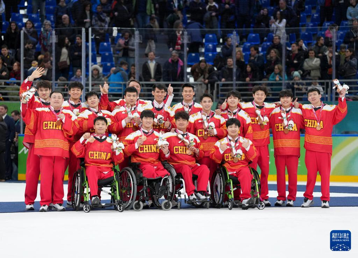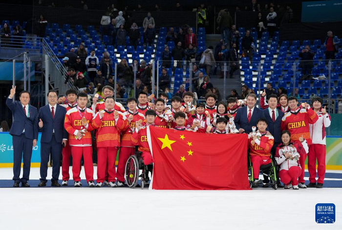 当地时间3月15日,在意大利米兰举行的米兰-科尔蒂纳冬残奥会残奥冰球铜牌赛中,中国队3比2战胜捷克队,夺得季军。